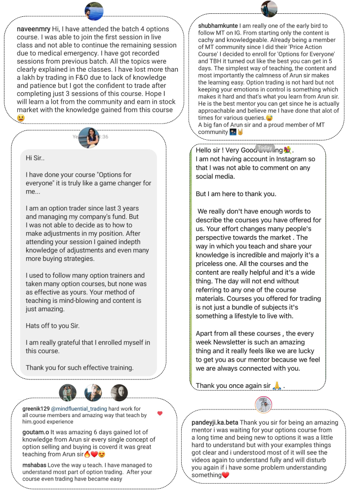 Along with setups & strategies, I'll teach you the right mindset to trade options that will give you results only if you apply them correctly in the live market. Here's how the mentorship helped fellow traders.